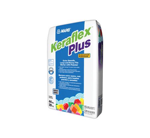 Keraflex Plus is a highly versatile, nonsag/nonslump, large-and-heavy-tile mortar and thin-set mortar for tile and stone installations on floors, walls and countertops. This polymer-modified mortar is formulated with Easy Glide Technology™ for ease of application and offers excellent adhesion to substrates and tile. It can also be used as a mortar over uncoupling, crack-isolation, sound-reduction and waterproofing membranes.