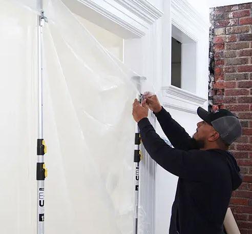 What makes our dust containment poles different? No loose parts that break or go missing, extra durability, and easy setup. The heavy-duty aluminum poles are available in three heights: 12ft, 16ft, and 20ft. The 12ft poles even come in convenient kits. Simply clip the plastic onto the quick clip and adjust the pole to ceiling height. The unique foot pedal ensures a snug fit. You can even use the Trimaco E-Z Up Zipper to create an instant doorway in and out of the workspace.